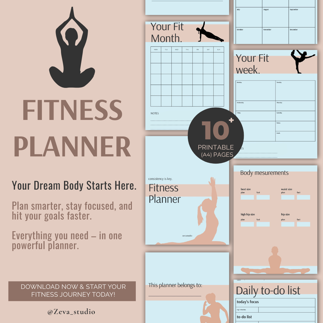 This 10-page Fitness Planner – Minimal Wellness Edition is designed to help you stay consistent with your health goals in a calm, clutter-free format.
