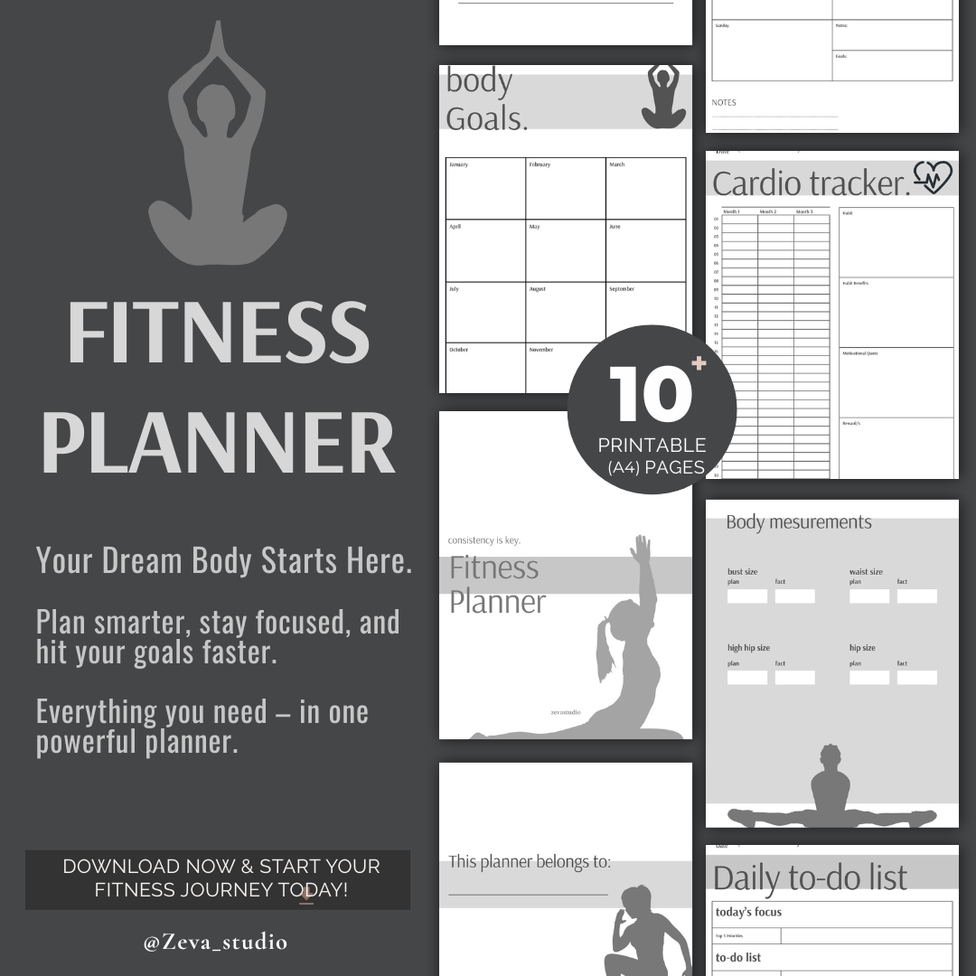 Perfect for anyone looking to track workouts, habits, and body progress – in both printable and digital formats.